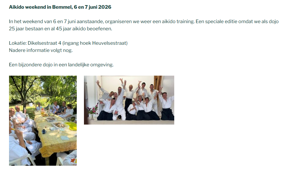 Nieuws – Ki Aikido Bemmel viert 25-jarig bestaan